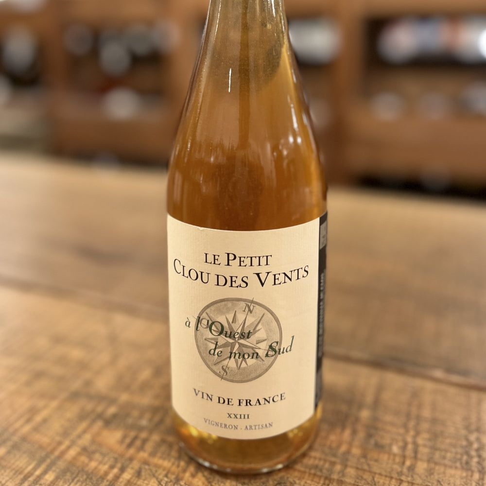 ル・プティ・クロ・デ・ヴォン(Le Petit Clou des Vents)、醸造家シルヴァン・ジュグラ(Sylvain Jougla)が手がける「ア・ルウエスト・ド・モン・シュド ブラン(à l'Ouest de mon Sud Blanc)」は、フランス南西地方の空気感をそのまま閉じ込めた、醸し(マセラシオン)白=オレンジスタイルの1本。